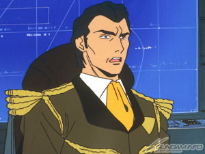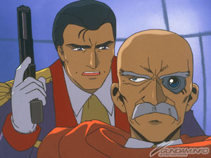 Next is Tassilo Wago, a (not-too-)grizzled vet who fills out his uniform nicely. A staff officer of the Zanscare Empire, a militarily-powerful Side 2 colony which invades Earth under abject devotion to its young queen Maria Pure Armonia, he commands the fleet stationed at the space fortress Kailash Gillie and is a trusted confidant of Chancellor Fonse Kagatie.
