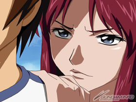 Captured by masked ZAFT commander Rau le Creuset at the Battle of JOSH-A and given the "key to ending the war" (Neutron Jammer Canceler data), she once again flees in an escape pod (!) and, meeting Kira again by chance, confesses her true feelings...
