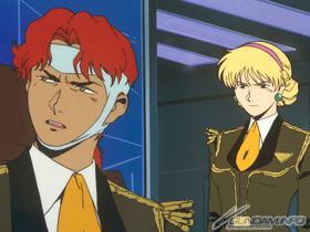 As Operation Stardust, a colony drop intended to restore the Principality of Zeon, unfolds, Kou dismounts to prevent Gato from making final corrections to the colony's course, only to be held at gunpoint by Nina who tells him that "it has nothing to do with (the colony drop or Gundam-jacking)" (Then what is it about?) before disappearing with a wounded Gato.