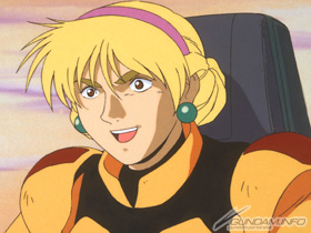 Born on the moon, she's employed at the Von Braun factory of Anaheim Electronics (famous for producing "everything from spoons to battleships.") She's a famous Gundam enthusiast, borderline-obsessed with her own designs.