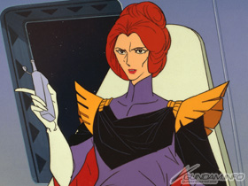 To show her loyalty to Scirocco, she unquestioningly gasses a colony in Side 2. (See? Terrifying!) While this may seem like a simple betrayal, it also could be Reccoa's personal feelings overpowering her professional goals and seeking revenge after being jilted by Char even though she realizes Scirocco's true motive.