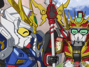 There's also the SD Sengokuden or "Musha Gundam" series, starring the uber-Japanese Musha Gundam clad in samurai armor. In a world based on Japan's 16th-century civil wars (even divided up into "arcs" based on the Japanese Zodiac!), mobile suits who are their own living, breathing (?) characters rather than robots.