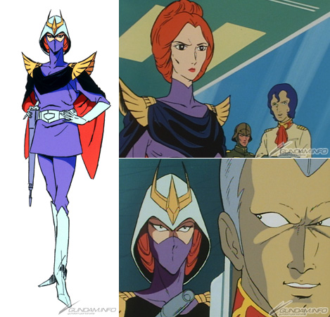 Her ethnic-influenced dress sets her apart at a single glance. Plucked from poverty by Char, trained by the Flanagan Institute (a military apparatus devoted to Newtype research,) she is commissioned as an ensign in Zeon's forces.