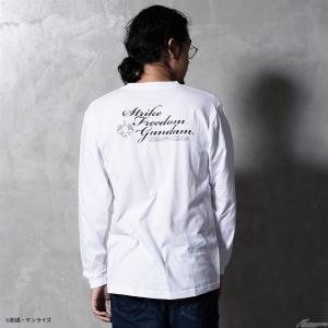 T-shirt a maniche lunghe con un semplice disegno di Destiny Gundam e Strike Freedom Gundam espresso con lettere.Il lato frontale presenta una stampa a lamina singola che gli conferisce un aspetto sottile.ke Freedom Gundam espresso con lettere. La parte anteriore s