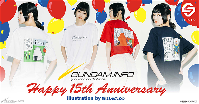GUNDAM.INFO T-shirt e mini asciugamani per il 15° anniversario saranno in vendita in ogni negozio sabato 9 dicembre da STRICT-G, un marchio di abbigliamento che incorpora il mondo di Gundam.