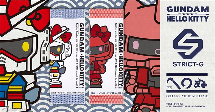 Due tipi di asciugamani Gundam ★ Hello Kitty Tenugui consegneranno domani sabato 20 giugno presso i rigidi-G Stores, negozi di abbigliamento che incorporano il mondo di Gundam.