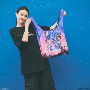 Le borse della spesa riutilizzabili sono disponibili in tre design, ciascuno con Teaser Visual, Mecha Visual e Main Visual.Il supporto acrilico presenta la grafica principale e l'asciugamano sportivo presenta un'illustrazione del character designer Hisashi Hirai.
