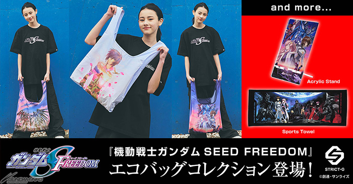 Da STRICT-G, il negozio di abbigliamento che presenta l'universo di Gundam, arrivano tre tipi di borse della spesa riutilizzabili, un supporto acrilico visivo principale e un asciugamano sportivo visivo lungo ispirato aMobile Suit Gundam SEED FREEDOM.I pre-ordini iniziano oggi, venerdì 16 febbraio, alle 13:00.