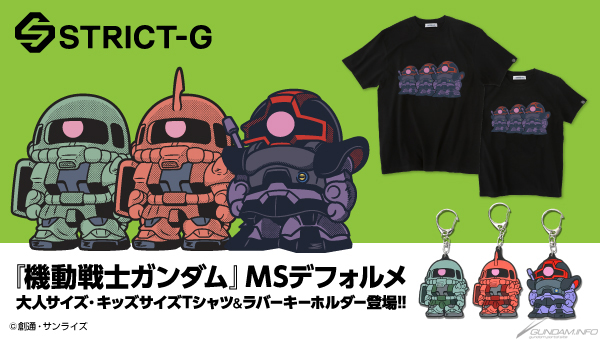 Pre-ordini per il design Dom delMobile Suit GundamMS T-shirt deformate e i tre tipi di portachiavi in gomma deformata MS inizieranno oggi, venerdì 21 giugno alle 13:00 (JST) sul negozio online STRICT-G all'interno di Premium Bandai.