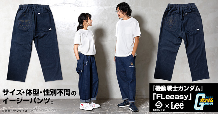 STRICT-G, un negozio di abbigliamento che incorpora il mondo di Gundam, ha collaborato con il marchio di jeans americano Lee per rilasciare due tipi di pantaloni facili FLeeasy adatti a tutte le taglie, tipi di corporatura e genere.