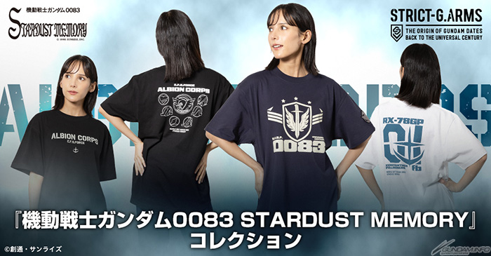 Pre-ordini per quattro tipi di STRICT-G. ARMS Mobile Suit Gundam 0083: Stardust Memory T-shirt iniziano oggi, 8 novembre, alle 13:00 JST attraverso il negozio online STRICT-G su Premium Bandai.