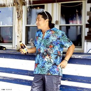 Le sei camicie hawaiane ricreano il mondo di Gundam in tutte le loro stampe esotiche disponibili nelle fantasie "nelle foglie" (Gundam/Char ' s Zaku II), i modelli "battaglia Jabro" (E.F.S.F./ZEON) e i modelli "subtropicali" (E.F.S.F./ZEON).