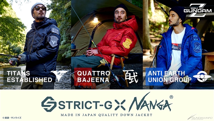 Questo round è la quinta collaborazione tra STRICT-G e NANGA, e la sua formazione include A.E.U.G., Titans, e quattro Bajeena modello piumini per celebrare il 35 ° anniversario diMobile Suit Z Gundam.Ci saranno anche logo design T-shirt e un sacchetto di sacco a pelo Hyaku-Shiki.