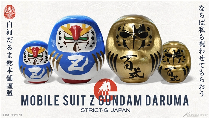 La Z Gundam e la Hyaku-Shiki Daruma saranno disponibili nel modello 15cm e nel modello leggermente più corto di 8,5 cm.Ogni Daruma è stata amorevolmente lavorata artigianalmente da artigiani locali.