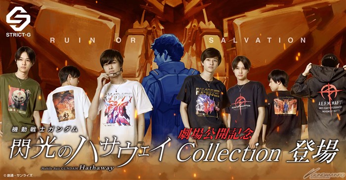 STRICT-G, il negozio di abbigliamento che unisce il mondo di Gundam con la moda, inizierà a vendere ilMobile Suit Gundam HathawayRaccolta commemorativo presso il rigoroso-G Tokyo Solamachi e Shizuoka (Aichi-Bound) rami a partire da domani, sabato, May 15.