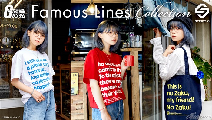 Questa collezione è costituita da quattro elementi (T-shirt a maniche corte, tote bag, tazze e portachiavi acrilici), ognuno con quattro diversi disegni di linee famose.Le linee scelte per questi disegni sono le seguenti: Amuro Ray ' s "ho ancora un posto dove andare a casa...NS), ognuna con quattro diversi disegni di linee famose. La lineat, tote bag, tazze e portachiavi acrilici), EAt-shirt, tote bag, tazze e portachiavi acrilici), ognuna con quattro diverse dportachiavi acrilici), ognuna conquattro elementi (T-shirt a maniche corte, tote bag, tazze e RACBorse, tazze e portachiavi acrilici)T-Shirt, tote bag, tazze e acrilici a manica a Ort