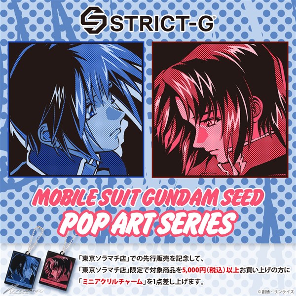 Il rigoroso-G Tokyo Solamachi Store, un negozio di abbigliamento ispirato al mondo di Gundam, rilascerà gli ultimi prodotti dellaMOBILE SUIT GUNDAM SEEDSerie POP ART come pre-release a partire da sabato 10 luglio.