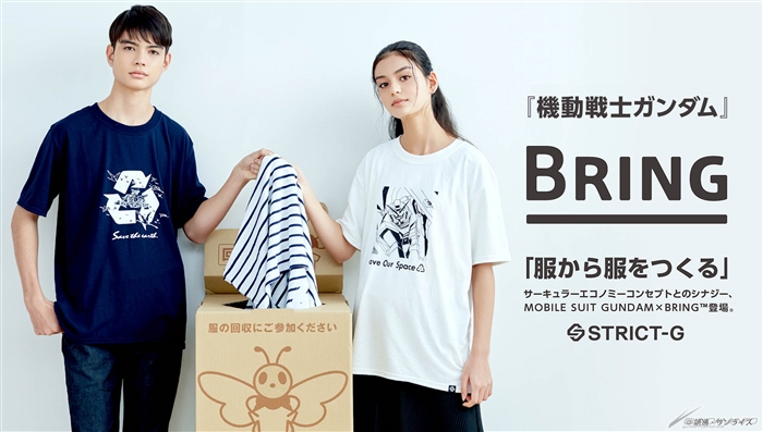 Elementi di collaborazione realizzati traMOBILE SUIT GUNDAMe portare™, un marchio sviluppato da JEPLAN Inc., che raccoglie, ricicla e vende vestiti utilizzando materiali riciclati, sono apparsi.Gli articoli e gli articoli sostenibili della linea BRING™ Apparel, che utilizza il materiale™, un materiale in poliestere riciclato che è realizzato con indumenti usati, non sono solo sostenibili e rispettosi dell'ambiente, ma anche comodi da indossare.materiale di abbigliamento usato — non sono solo sostenibili e rispettosi dell'ambiente, ma hanno
