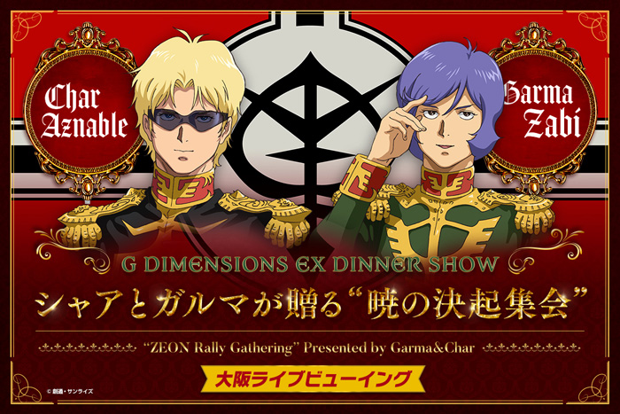 Gli eventi di Live viewing con la cena di G DIMENSIONS EX "ZEON raduno raduno" presentato da Garma & char inizieranno mercoledì 9 settembre presso GUNDAM Café Osaka Dotonbori e GUNDAM SQUARE.