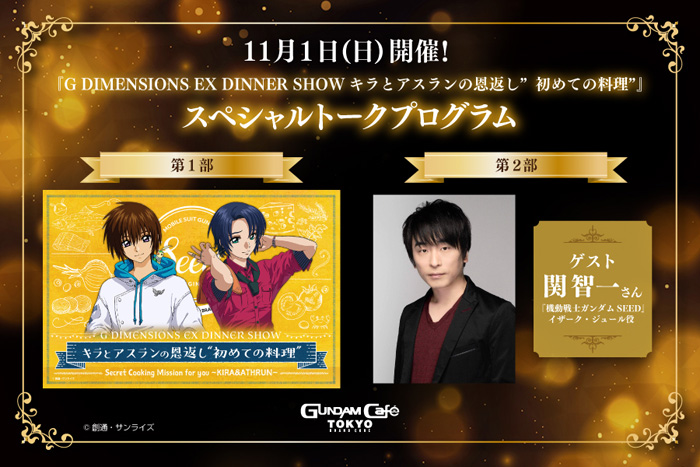 Parte 1 sarà caratterizzato la versione completa di G dimensioni EX cena Mostra la missione di cottura segreta per voi ~ KIRA & ATHRUN ~, tra cui membri del personale dell'attore.Doppiatore Tomokazu Seki apparirà come un ospite e Yuma Aoki sarà il MC per il talk show nella parte 2.