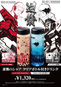 Durante laContrattacco di CharFair periodo limitato, oggetti speciali saranno disponibili come il "destino di rosso e bianco" oggetto alimentare in edizione limitata che viene fornito con un tovaglietta di carta speciale;UnContrattacco di Charbevanda in edizione limitata;due tipi diContrattacco di Charbevande con bottiglie trasparenti con disegni che presentano char & Sazabi e Amuro & ν Gundam;e uno speciale fortuneLatte.