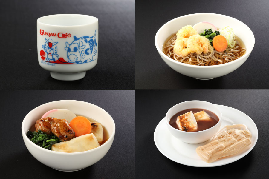L'originale zuppa di fagioli rossi (zenzai) sarà disponibile da sabato 26 dicembre in tutti i negozi.L'originale Ozomi e l'originale Capodanno soba saranno disponibili anche presso GUNDAM Café TOKYO, GUNDAM Café Osaka Dotonbori e GUNDAM SQUARE.