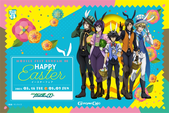 Questa fiera di Pasqua conMOBILE SUIT GUNDAM 00includerà Setsuna F. Seiei, Lockon Stratos, Tieria Erde, Allelujah Haptism, e Graham Aker in orecchie da coniglietto.