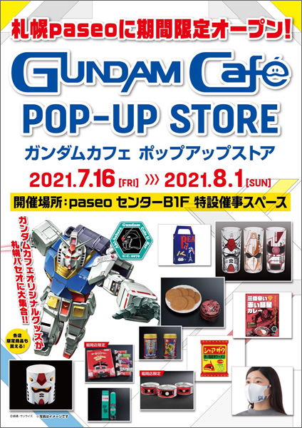 Il negozio di POP-UP di GUNDAM Café apre oggi, il 16 luglio, per un periodo limitato al Paseo nella stazione di Sapporo, Hokkaido.