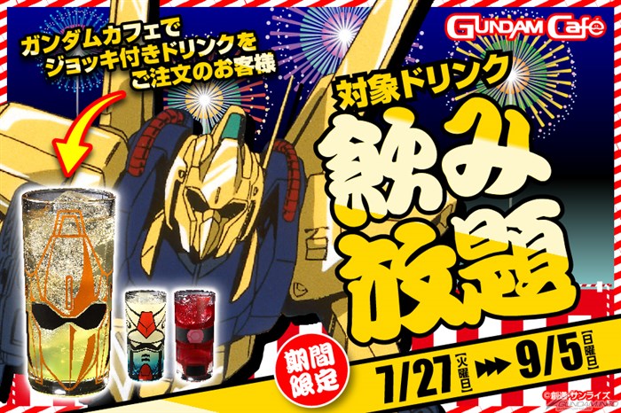 Siete pregati di notare che attualmente, il GUNDAM Café TOKYO serve solo bevande analcoliche, mentre il GUNDAM SQUARE serve alcolici fino alle 7:00PM (si applicano termini e condizioni).