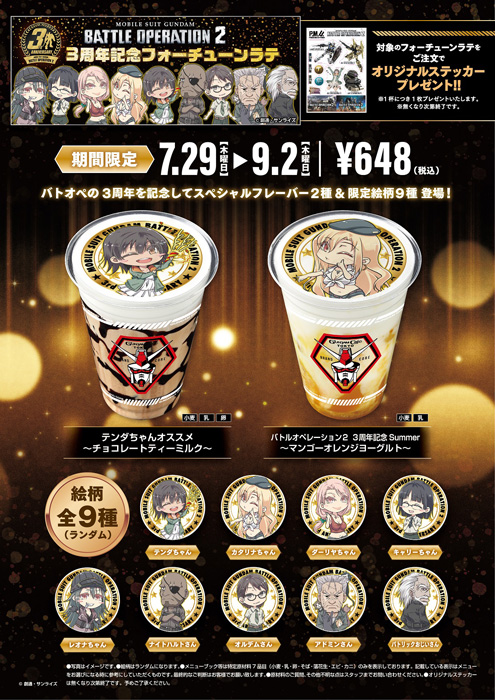 FortuneLattes per celebrare il 3 ° anniversario diMobile Suit Gundam battaglia operazione 2andrà in vendita giovedì 29 luglio ad ogni GUNDAM Café.