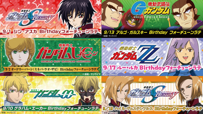 I FortuneLattes compleanno di settembre che saranno disponibili a partire da domani, 1 settembre, al GUNDAM Café e GUNDAM SQUARE sono stati rivelati.