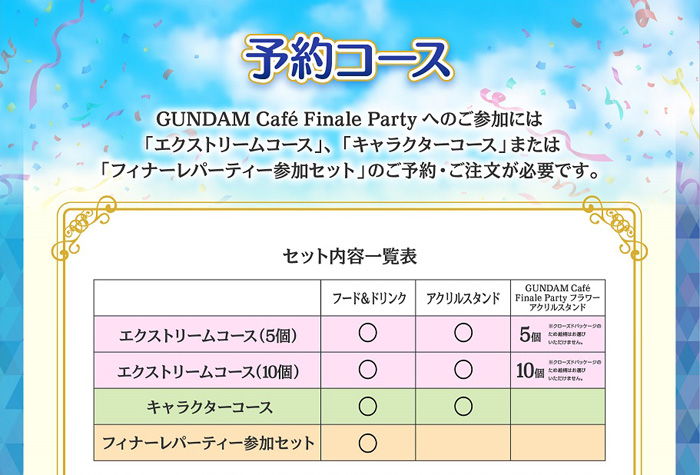 * Il GUNDAM Café finale Party Flower stand acrilico sono pacchetti chiusi, quindi non è possibile scegliere il design.