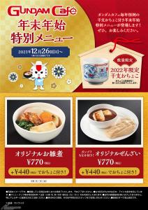 Un menu speciale per le vacanze di Capodanno sarà disponibile presso il Gundam Café, GUNDAM Café e la piazza GUNDAM di Osaka a partire dal 26 dicembre (domenica).
