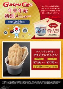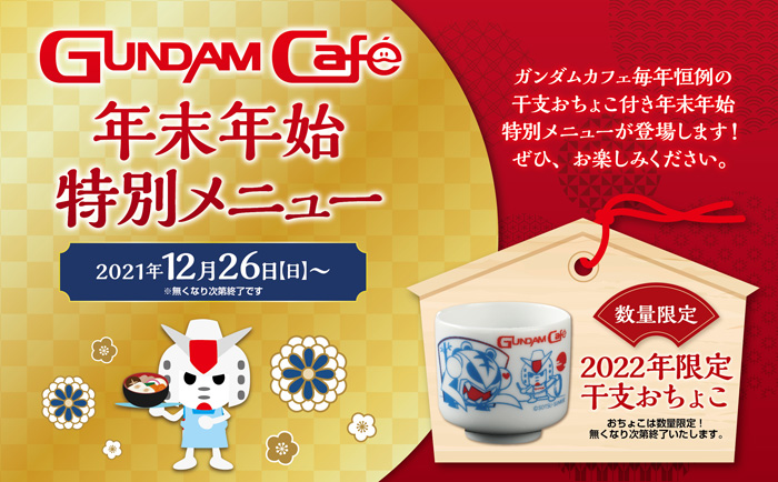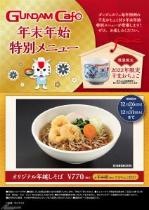 Il menu includerà originale zenzai (con un GUNPLA Monaka).Il GUNDAM Café TOKYO avrà anche un originale Toshikoshi soba e un originale ozoni.