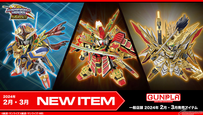 GUNPLA come SDW HEROES Onmitsu Gundam Aerial, SDW HEROES Musha Gundam The 78th, e SDW HEROES Tenkamusodaidaishogun daSD Gundam World Heroes Kirahagane Monogatarisarà rilasciato.