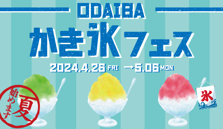 L'ODAIBA Shaved Ice Festival è un evento in cui i food truck si riuniscono per vendere ghiaccio tritato fotogenico popolare in tutto il mondo, tra cui ghiaccio tritato proveniente da Hawaii, Corea del Sud e Filippine, nonché ghiaccio tritato giapponese a base di matcha e tè verde tostato.