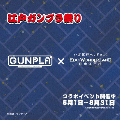 L'Edo GUNPLA Festival 2024 si sta attualmente svolgendo presso EDO WONDERLAND Nikko Edomura, un parco culturale che ricrea le vaste strade di Edo sullo sfondo delle splendide montagne di Nikko. L'evento si terrà fino a sabato 31 agosto.