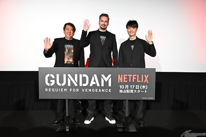 Gundam: Requiem per vendettafinalmente inizia lo streaming in tutto il mondo su Netflix giovedì 17 ottobre. Uno speciale evento di proiezione per celebrare l'uscita della serie si è tenuto oggi, sabato 12 ottobre, presso il TOHO Cinemas Roppongi Hills di Tokyo.