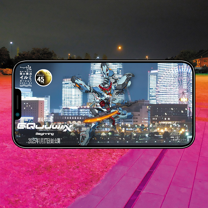 Questo progetto celebra il rilascio delMobile Suit Gundam GQuuuuuuX -Inizio della storia- Versione cinematografica.Gli effetti AR dei personaggi di vari titoli della serie Gundam appariranno in punti di illuminazione come il Festival del Capodanno cinese di Yokohama 2025 e il Winter Wonder Park Yokohama 2024 nel Parco Yamashita, che fanno parte dell'evento Night Yokohama Illumination 2024-25. Chiunque abbia uno smartphone può partecipare al raduno fotografico AR senza installare un'app.