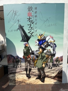Nobuo Tobita, il doppiatore di Kamille Bidan diZ Gundam, Hikaru Midorikawa, il doppiatore di Heero Yuy diGundam W, Kengo Kawanishi, il doppiatore di Mikazuki Augus e Yoshimasa Hosoya, il doppiatore di Orga Itsuka (entrambi daOrfani di Sangue di Ferro), è salito sul palco per un talk show.