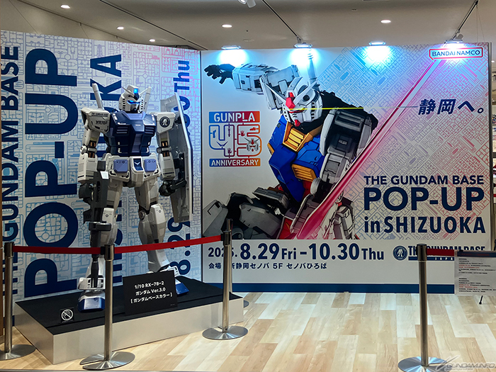 Per celebrare il lancio della nuova fabbrica Shizuoka Bandai Hobby Center e l'inaugurazione del museo all'interno della nuova fabbrica, THE GUNDAM BASE POP-UP a SHIZUOKA si sta attualmente tenendo presso il cenova Hiroba al 5 ° piano di Shin-Shizuoka cenova. L'ingresso è gratuito e l'evento si terrà fino a giovedì 30 ottobre.