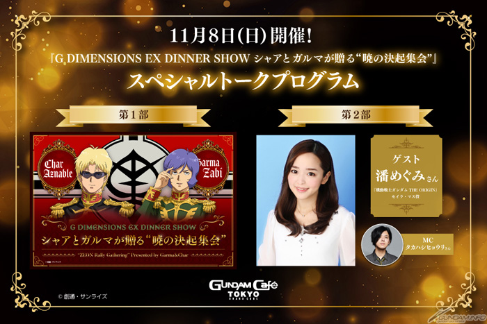 La prima parte sarà una versione completa di "ZEON raduno raduno" presentato da Garma & Char che comprende il personale di recitazione.La seconda parte sarà un discorso con Megumi Han e Hyouri Takahashi come il MC!