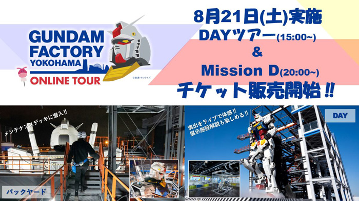 I biglietti sono attualmente in vendita per due tour online della GUNDAM FACTORY YOKOHAMA che si terranno sabato 21 agosto e ti faranno fare una sbirciata nel backstage della Moving Gundam:Tour di un giornoEMission D.