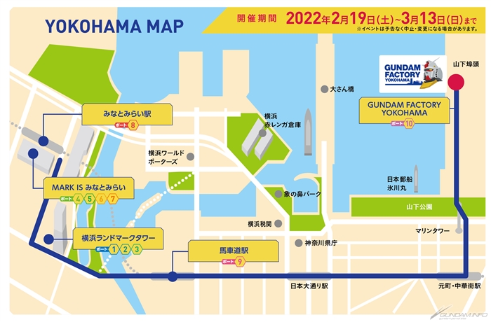 GUNDAM PORT YOKOHAMA, un evento in cui i visitatori possono godersi l'universo di Gundam in tutti i punti principali della baia di Yokohama (Prefettura di Kanagawa), è iniziato oggi sabato 19 febbraio.L'evento è gratuito.