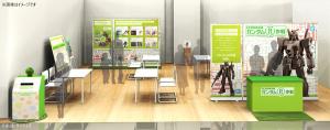 Inoltre, una speciale illustrazione di collage di generazioni di serie di Gundam protagonisti con le loro tute mobili può essere vista all'ingresso.