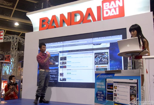 Gundam.info was also promoted on-stage. Gundam.info brings the newest Gundam news straight from Japan to the rest of the world. with a strong focus on Asian markets. A version is offered in Traditional Chinese for Hong Kong.