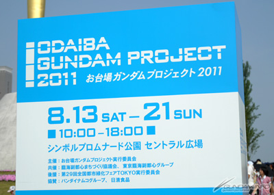 The Odaiba Gundam Project 2011 is only open until August 21st. Don't miss your chance to experience the amazing 1/1 scale Gundam up close!