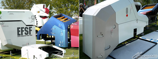 This time, you can see parts up close for the first time. Attendees can climb into the Gundam's right manipulator, or ride a bicycle to light up the Gundam's eyes.