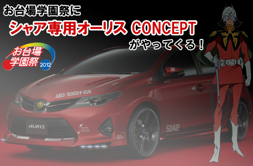 The Char Custom Auris was unveiled at this year's Chara-Hobby 2012 C3×Hobby as a concept collaboration between Char Aznable and Toyota.