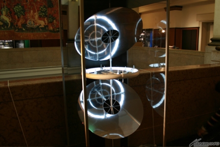 ▲1階ロビーでは、ビスト一族の肖像画とインダストリアル7が展示され、その迫力で来場者を『ガンダムUC』の世界へと一気に惹き込む。
